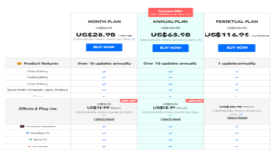 With our software, you will get lots of benefits. We provide best plans and offers with our services. All our plans are offered with number of different benefits and features. We are offered with 3 types of plans for our users. You can get monthly play at US$ 28.98 with over 10 updates manually and Effects & Plug-ins which are filmstock Standard, NewBlue FX, Boris FX andAI Portra. We also provide wondershare drive 1 GB as service in just adding US$ 18.99/ monthly which can be cancel anytime. With yearly plan of US$ 68.98. Effects plugin you will get filmstock Standard with over 10 updates manually, NewBlue FX, Boris FX andAI Portra. We also provide wondershare drive 1 GB as service in just adding US$ 18.99/ monthly can be cancel anytime, We also have Continuous Plan at US$ 116.95 with over 10 updates manually. Effects plugin available with the benefits of Video Editing, Audio Editing, Color Editing, Stock Media (Unsplash, Giphy, Pixabay) and Others, you will filmstock Standard, NewBlue FX, Boris FX andAI Portra. We also provide wondershare drive 1 GB as service in just adding US$ 36.96/ monthly can be cancel anytime. You can purchase and start using Filmora from today. To unbox all the feature fair visit our website and get what you want.