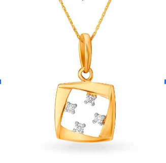 Do you like to wear solid tops or shirts regularly? This pendant from the Mia by Tanishq Finest Core collection is an absolute must-have in that case. It features four diamonds with a clarity of I2. This 14-karat Yellow Gold Pendant with Diamonds will give your pale outfit more definition and liveliness.