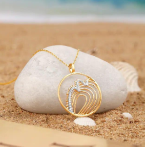 This gold pendant is the perfect way to enhance your style game! When it comes to jewellery for western clothing, you must select this pendant. Wearing this gold pendant and modest diamond earrings can significantly improve your appearance. This gold pendant is reminiscent of majestic sea waves and wearing it will also make you feel luxurious.